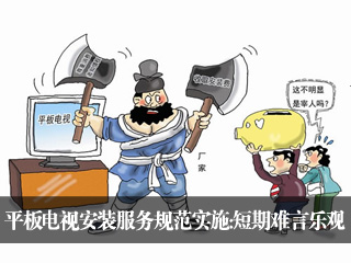 事实上,平板电视售后安装问题已成为行业一大难题。随着平板电视价格的平民化,购买平板电视的销售费越来越多,这一问题愈加凸显。平板电视不同于以往传统电视,其安装、调试过程都较为复杂,操作员工需要经过专业的培训。此外,现在平板电视的安装利润非常可观,有些甚至超过了电视销售利润,从而使得很多企业和第三方安装机构争相进入。